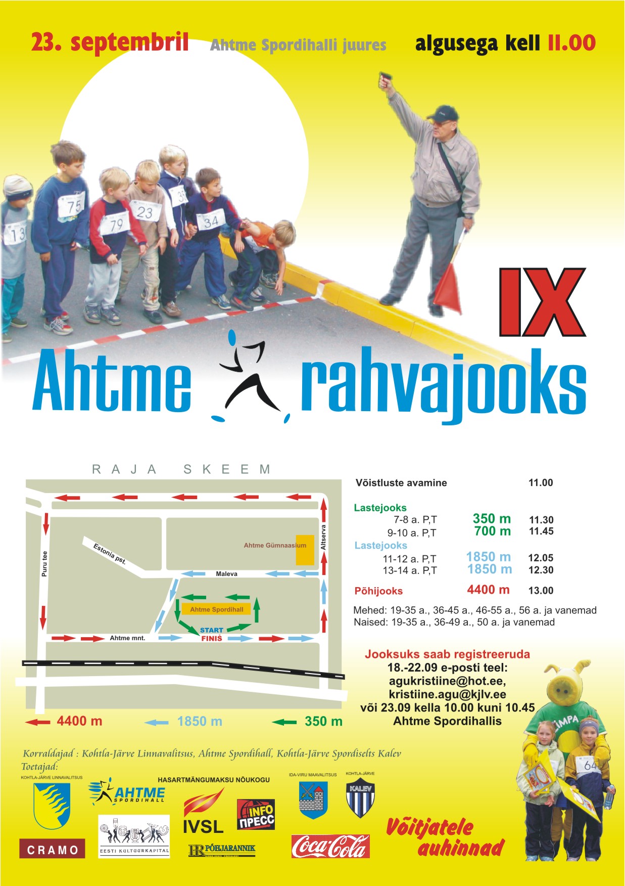 REGISTREERIMINE: Jooksuks saab registreeruda 18.-22.09 e-posti teel: agukristiine@hot.ee, kristiine.agu@kjlv.ee või 23.09 kella 10.00 kuni 10.45 Ahtme Spordihallis.